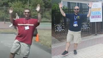 The following year, 2023, we welcomed over 230 delegates in marking the return to a full overnight program with two sessions of three days and two nights each. Another significant milestone took place in 2023, as Wendy Booth Sitzler retired after nearly 20 years as an Executive Director of NJASC and 40 years as a LTC Staff Member. Alex Mazella, Student Council Advisor at BCIT-Westampton, came on board to join Lou Miller as one of the two Executive Directors for NJASC. However, this was NOT Alex's first time at LTC - see the photo at right - he was a delegate from Washington Township High School at Session 2 of LTC 2002, and has become the first NJASC Executive Director in the 100 year history of our organization and 70+ year history of its LTC program who was once a student delegate at LTC.